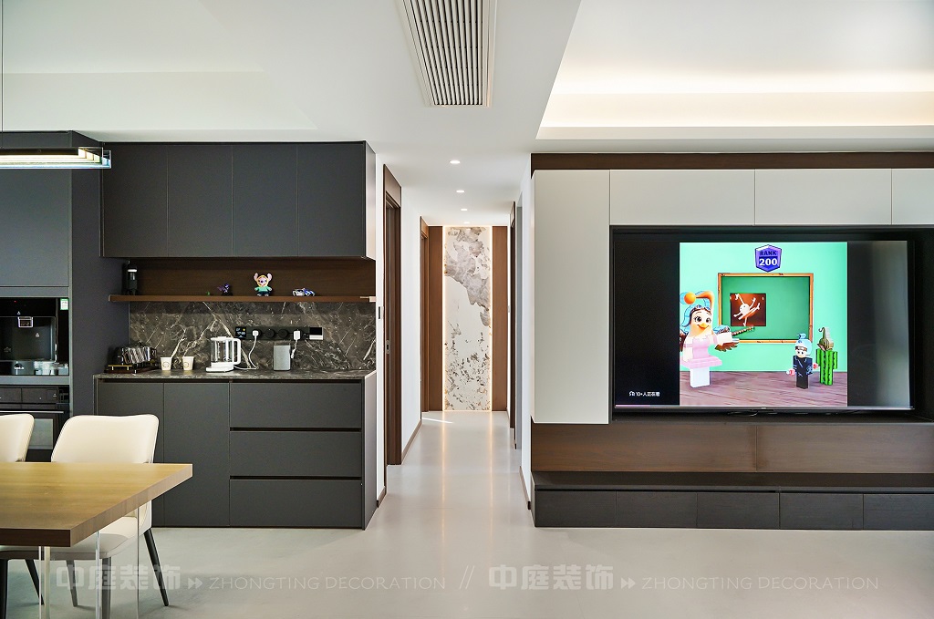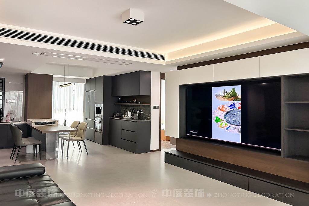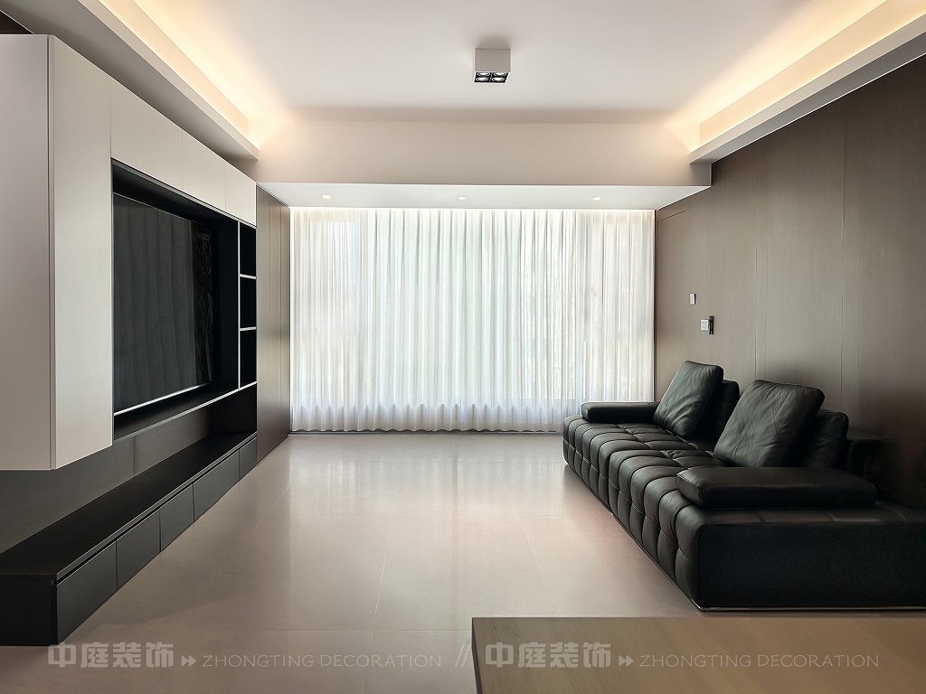 瀏覽量:65客廳以現(xiàn)代黑白灰極簡(jiǎn)風(fēng)格為核心,大面積白紗簾引入自然光線,黑色皮質(zhì)沙發(fā)質(zhì)感高級(jí)。開放式布局,深灰櫥柜與木質(zhì)餐桌形成材質(zhì)對(duì)比,線性吊燈提升精致感,功能與美學(xué)兼具,營(yíng)造現(xiàn)代簡(jiǎn)約的烹飪用餐氛圍。輕柔窗簾與柔和燈光,打造靜謐休息空間。精致的材質(zhì)選擇與合理的功能規(guī)劃,詮釋了“少即是多”的現(xiàn)代簡(jiǎn)約居住美學(xué)。